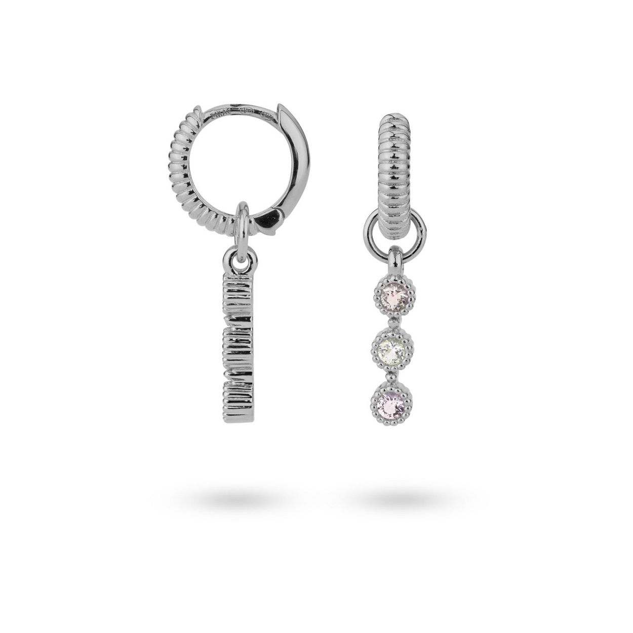 Mooie oorbellen van 24Kae met een geribbelde structuur aan de voorzijde, de achterzijde is glanzend. Aan de creolen hangt een hanger met drie ronde kleurstenen. Elk sieraad van 24Kae wordt met liefde en oog voor detail ontworpen door Kae Sutherland. Alle oorbellen van 24Kae hebben het authentieke kenmerk van een handgemaakte bedel met gravure. Details: - Diameter ring: 7 mm - Breedte ring: 2,6 mm - Afmeting hanger: 12 x 3,2 mm Materialen: - 925 Sterling zilver - Kubieke zorkonia stenen