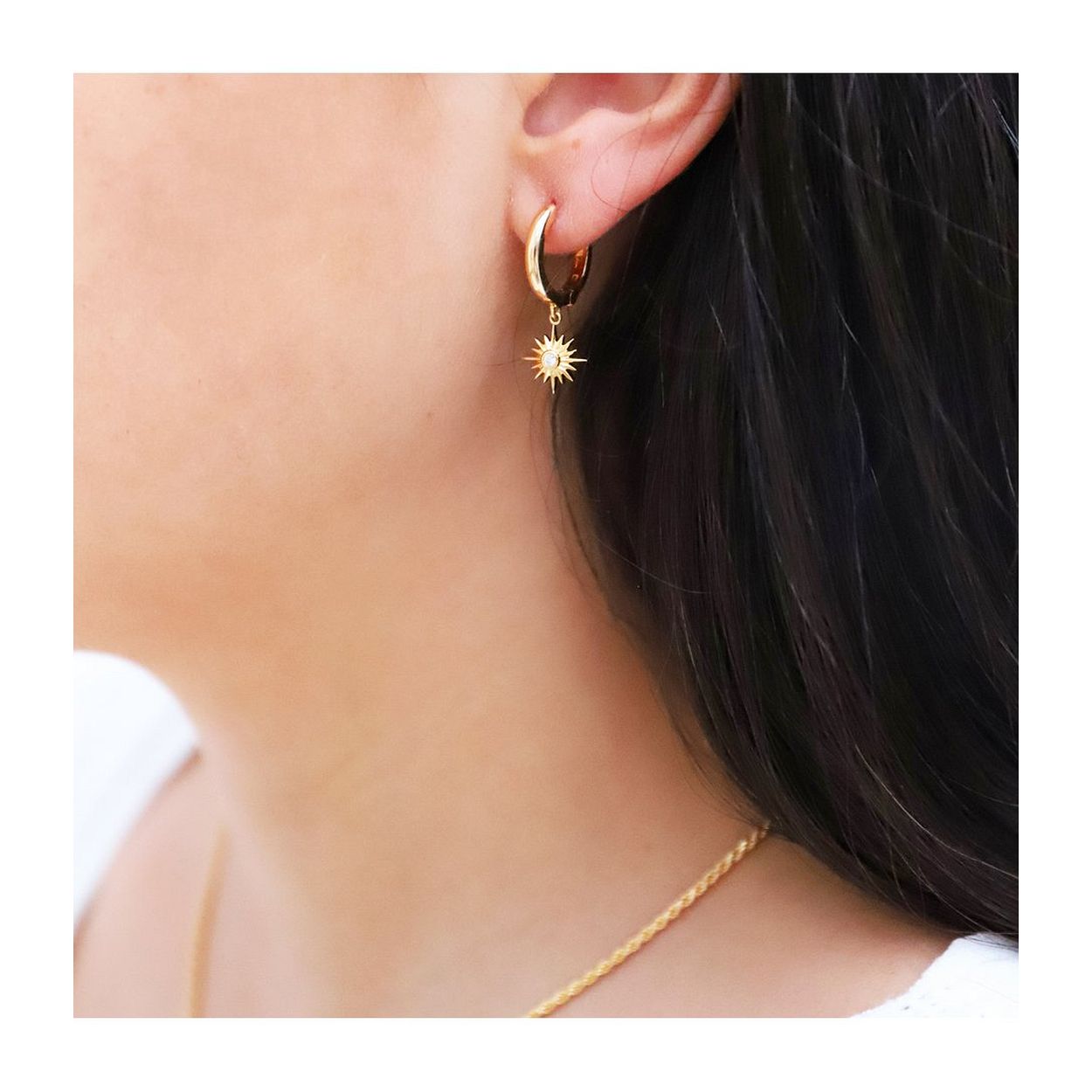 24Kae Creolen met hanger - 925 Sterling zilver geelgoud verguld  42412Y