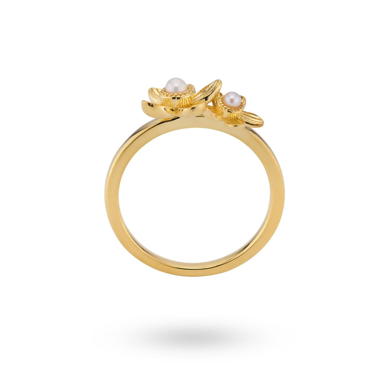 De bloemenfamilie! Deze ring heeft een gladde band met twee bloemen met in het midden een parel. Combineer deze ring met de bijpassende ketting, oorbellen en armband! Alle sieraden van 24Kae worden met liefde en oog voor detail ontworpen door Kae Sutherland. Elke 24Kae ring kenmerkt zich door zijn authenticiteit door middel van een 24Kae gravure. Details: - Dikte band: 1,4 mm - Breedte band: 1,9 mm - Maten bloemen: 14 x 8 mm Materialen: - 925 Sterling zilver, voorzien van een 14k gouden laagje - Parels
