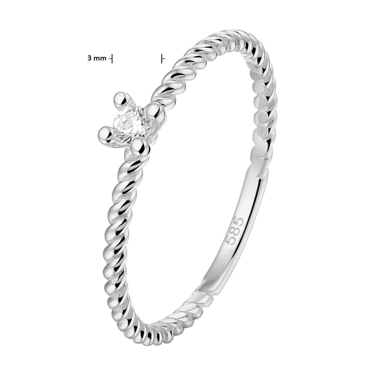 14k Witgouden aanschuifring uitgevoerd met een schitterende zirkonia. De ring heeft een breedte van 3mm.