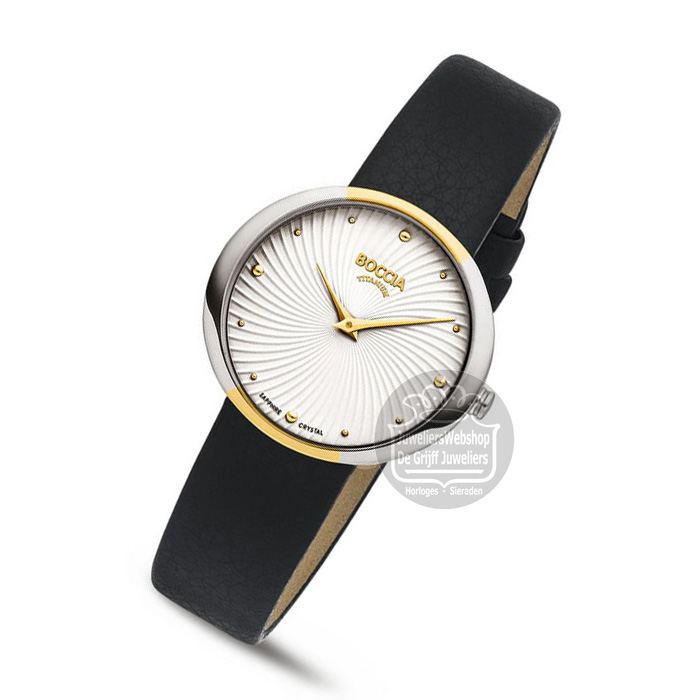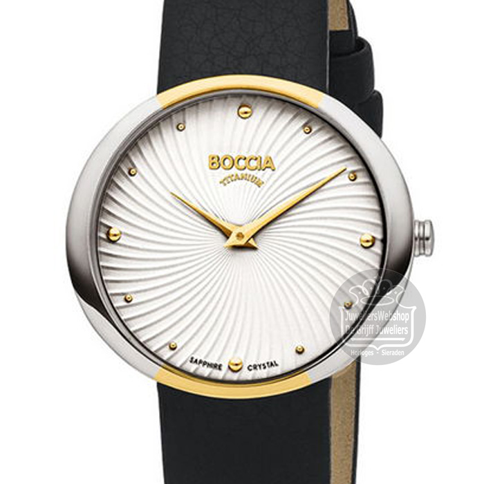 Boccia horloge 3364-03 Boccia dameshorloge bicolor titanium met zwarte leren band