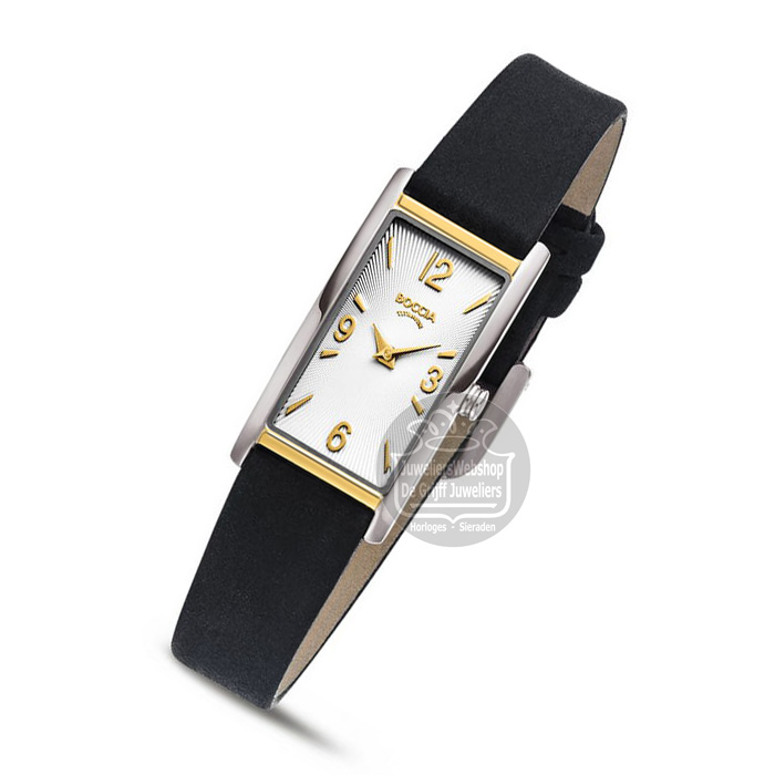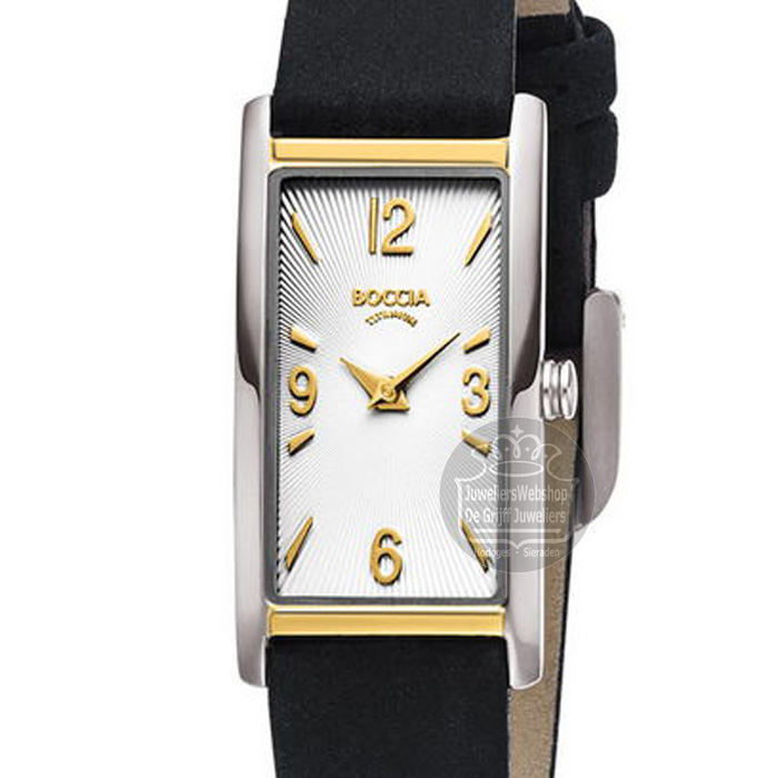 Boccia horloge 3366-02 Boccia rechthoekig dameshorloge titanium met leren band
