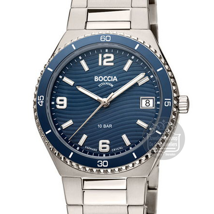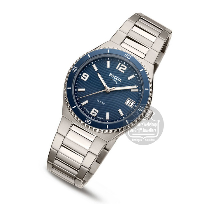 Boccia horloge 3357-02 Boccia dameshorloge titanium met blauwe wijzerplaat