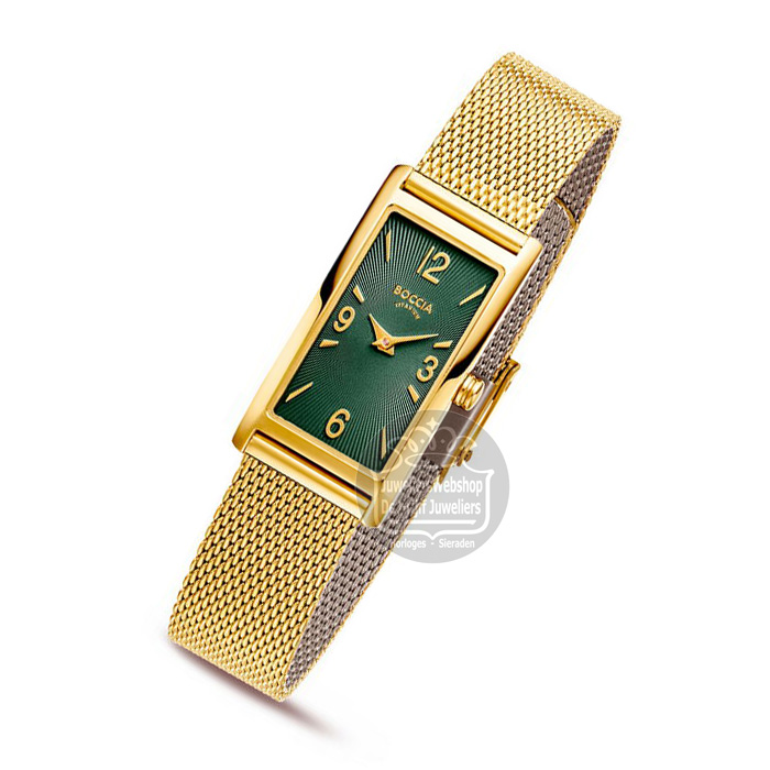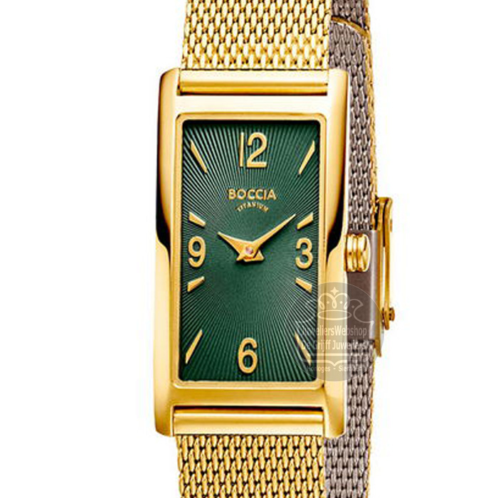 Boccia horloge 3366-03 Boccia rechthoekig dameshorloge titanium met stalen band