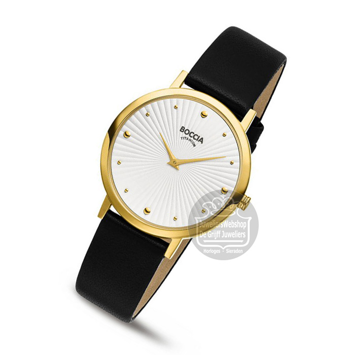 Boccia horloge 3365-03 Boccia dameshorloge titanium met leren band