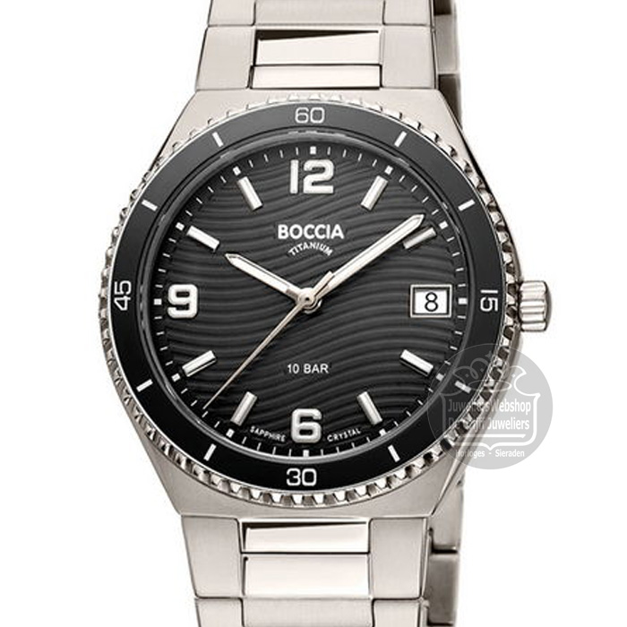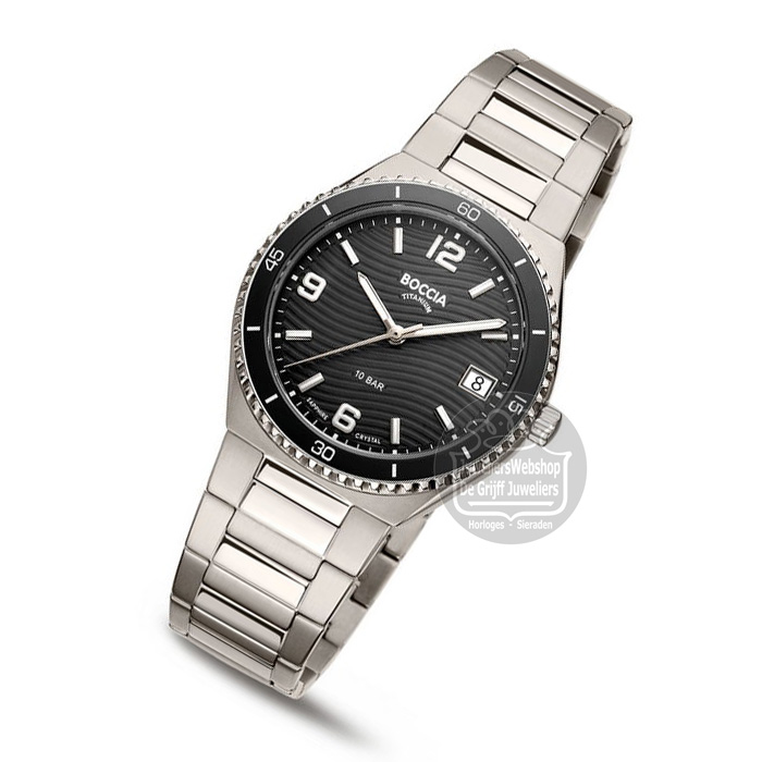 Boccia horloge 3357-03 Boccia dameshorloge titanium met zwarte wijzerplaat