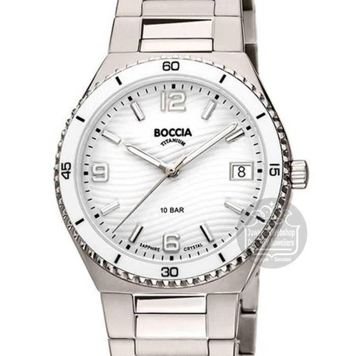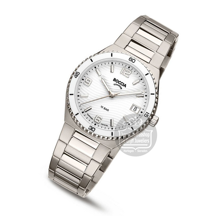 Boccia horloge 3357-01 Boccia dameshorloge titanium met witte wijzerplaat