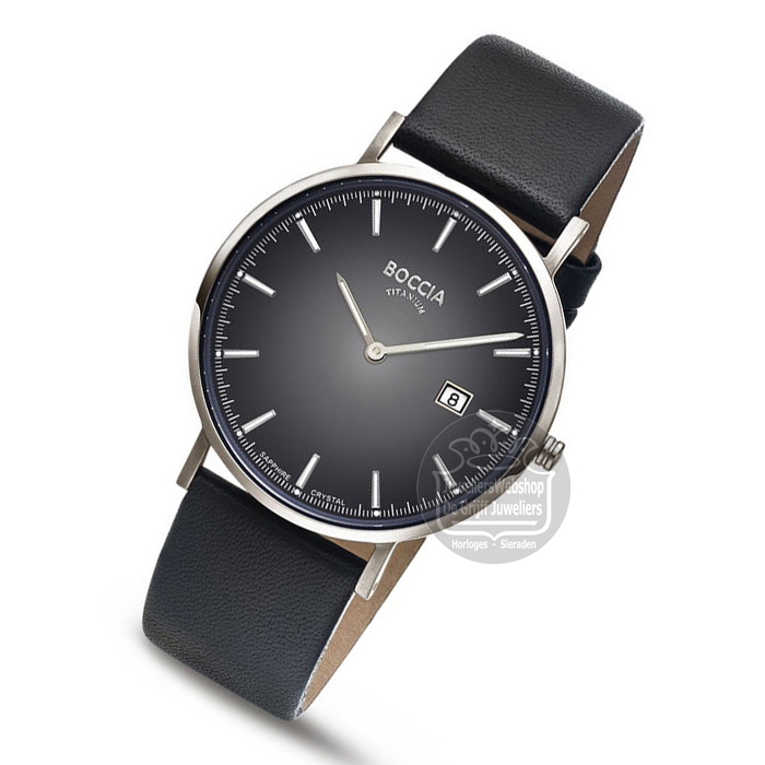 Boccia horloge 3648-04 herenhorloge titanium met donkergrijze wijzerplaat en zwarte leren band