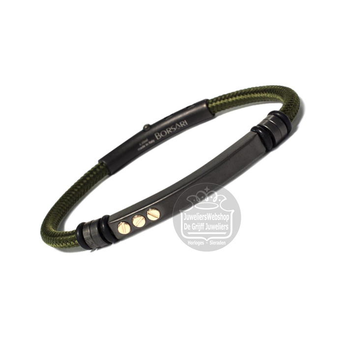 Borsari armband staal/ rosegoud en polyster donkerblauw