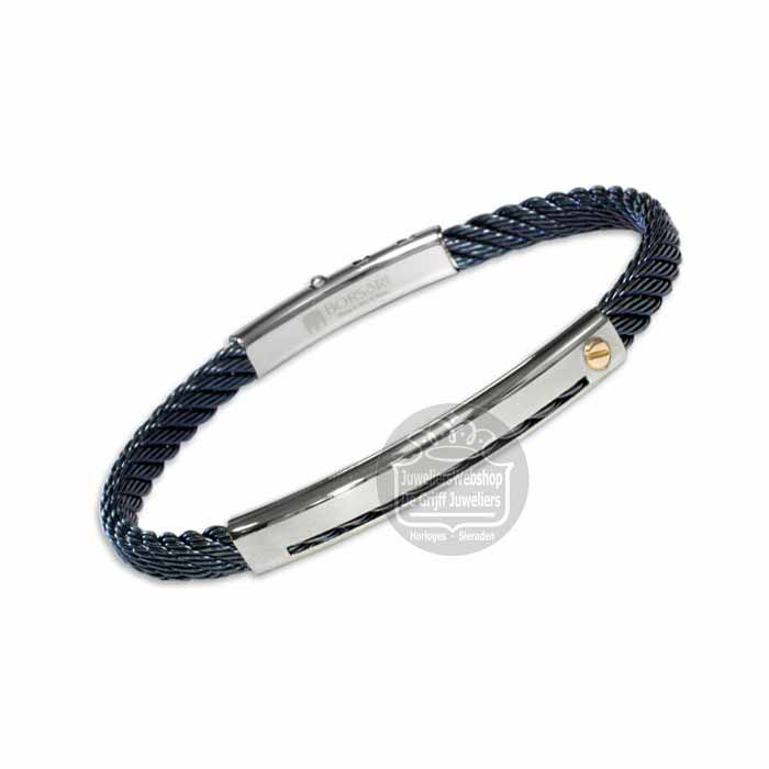 Borsari Armband Skema blauw gevlochten staal met roségoud