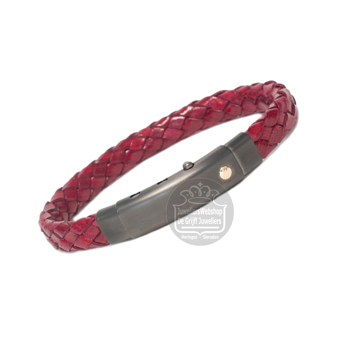 Borsari Armband Audace Pelle Leer Rood met 18 krt roségoud brstpe010