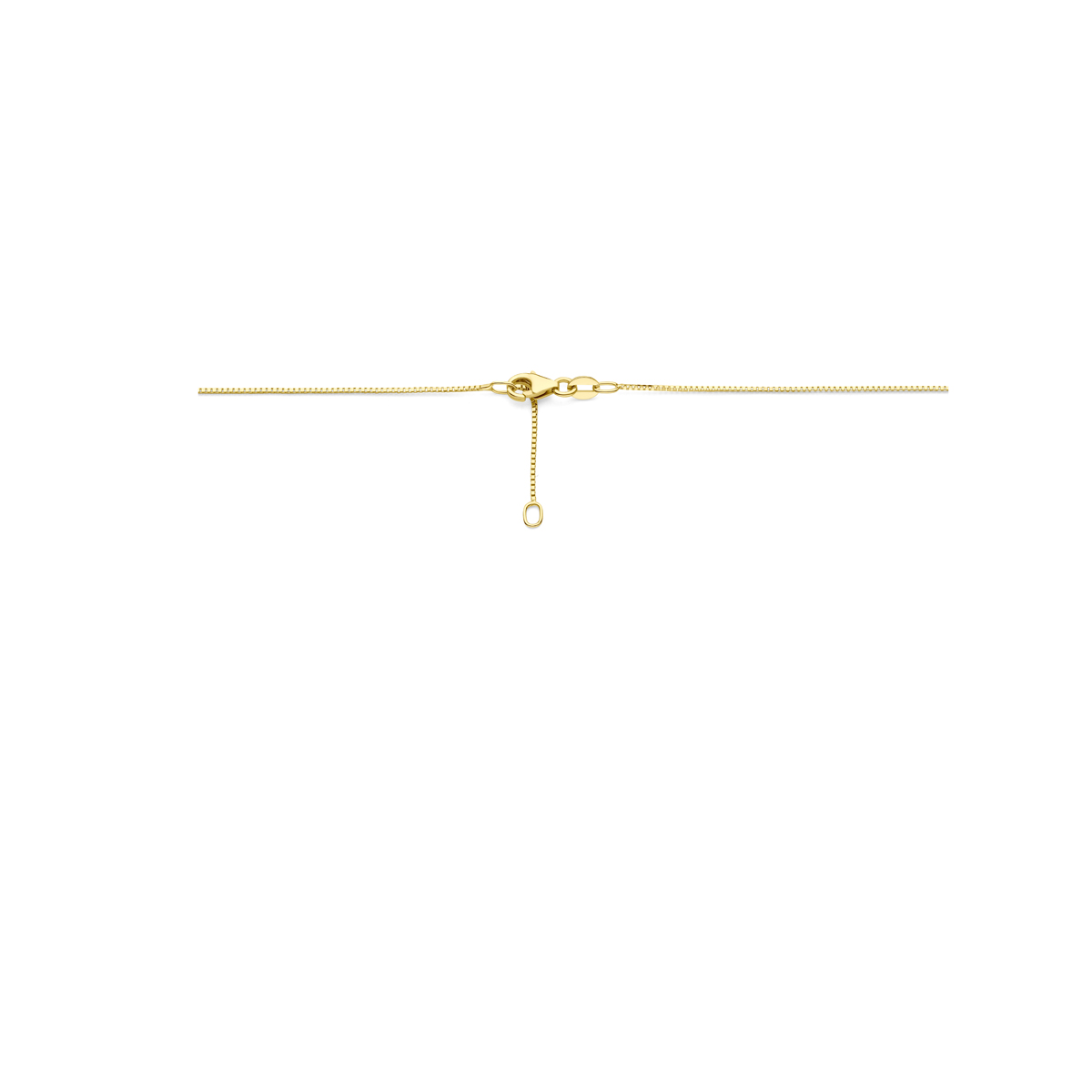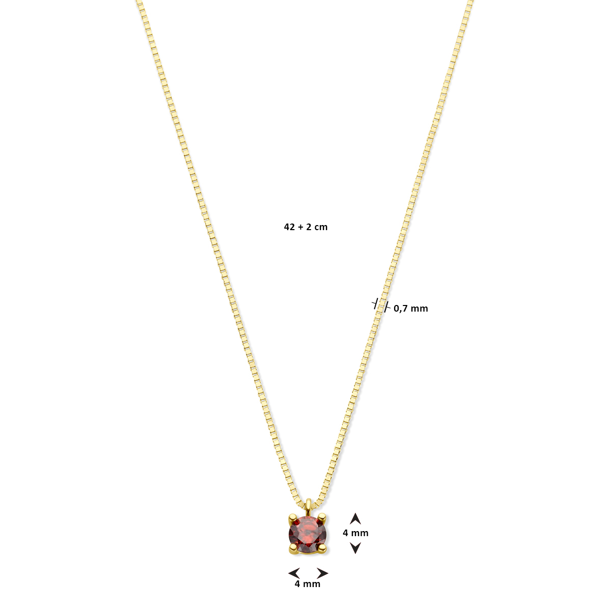 14k Geelgouden collier uitgevoerd met een geboortesteen hanger. Het collier heeft een draaglengte van 42cm en een extensie van 2cm. Uitgevoerd met een karabijn sluiting. De schakelbreedte is 0.7mm.