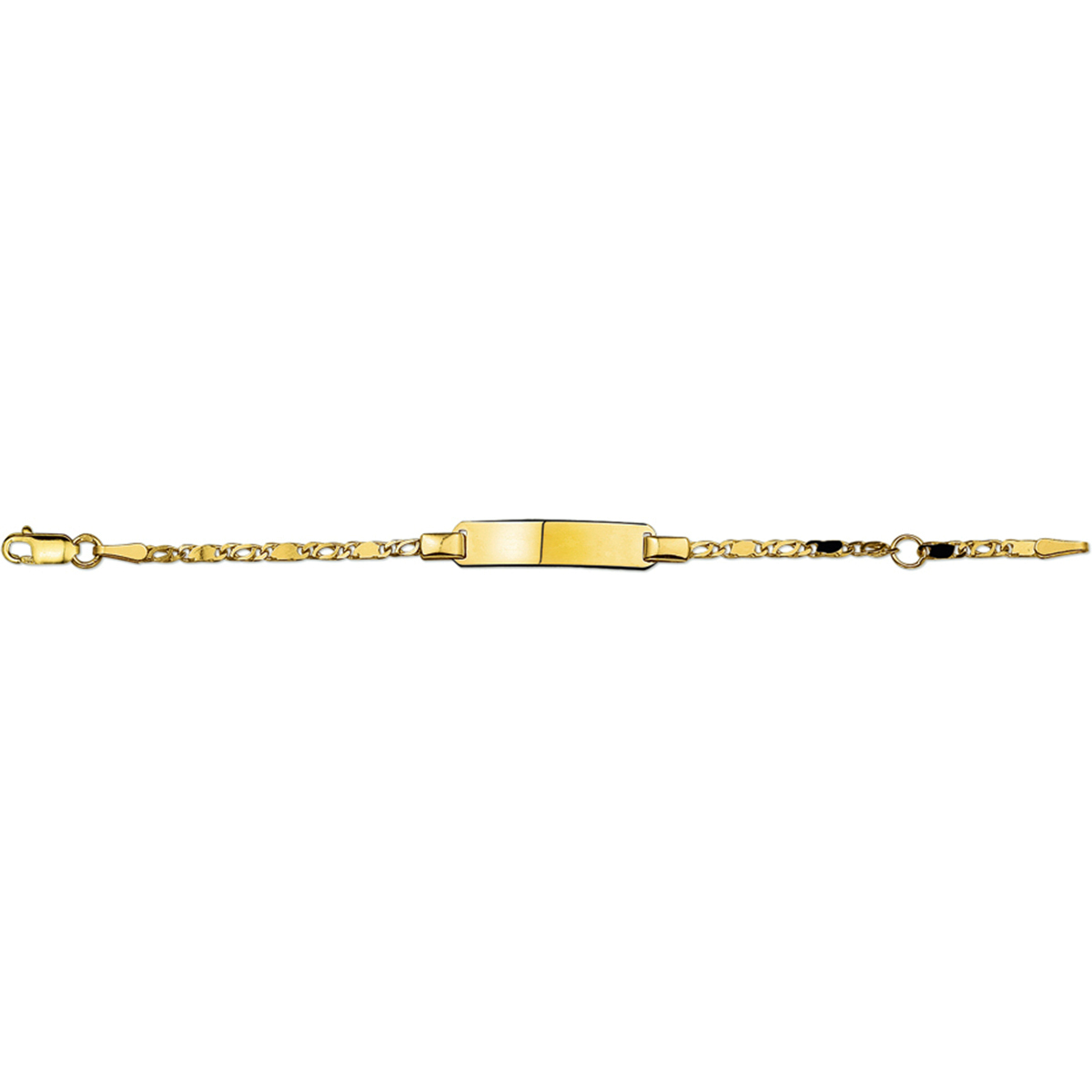 Geelgouden graveerarmband met een poli afwerking. De lengte van de armband bedraagt 11cm met 2cm extensie.