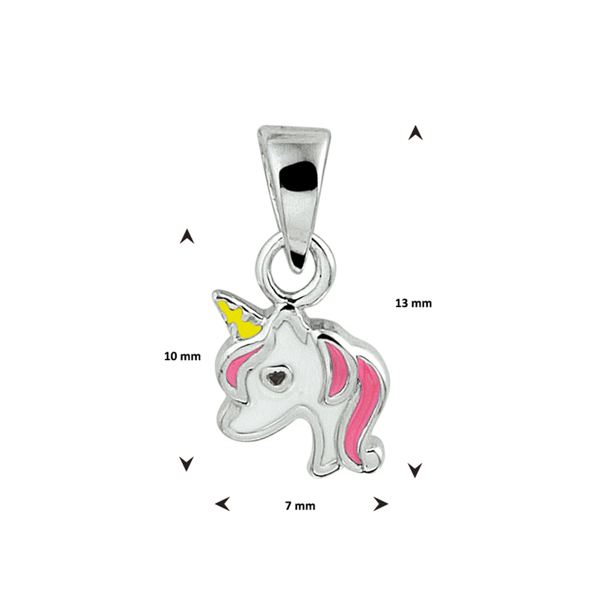 Schattige gerhodineerd zilveren fantasie eenhoorn hanger met een afmeting van 13x7mm. Deze hanger is perfect te combineren met bijpassende sieraden uit onze collectie. Tip: Leuk om kado te geven zie je ze al stralen!? Info: Gerhodineerd zilver is door de rhodiumlaag beter bestand tegen verkleuren en krassen.