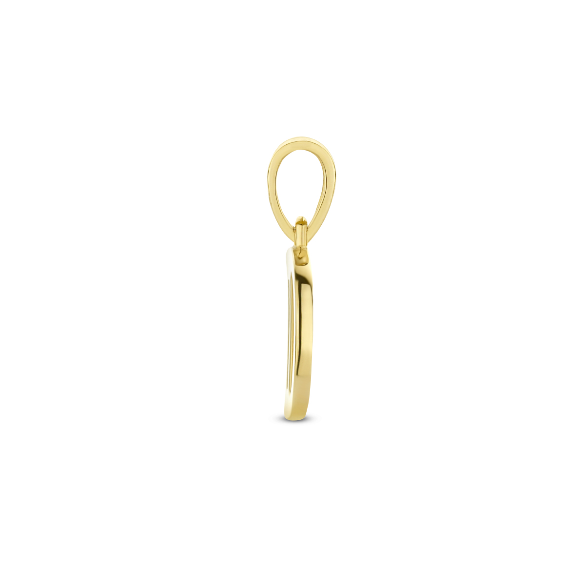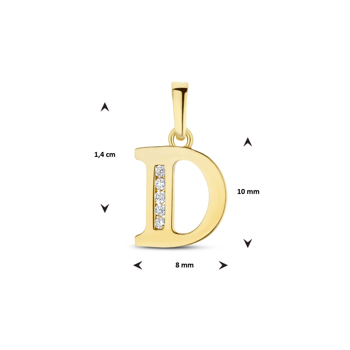 14k Geelgouden hanger in de vorm van een letter. Uitgevoerd met heldere zirkonia.