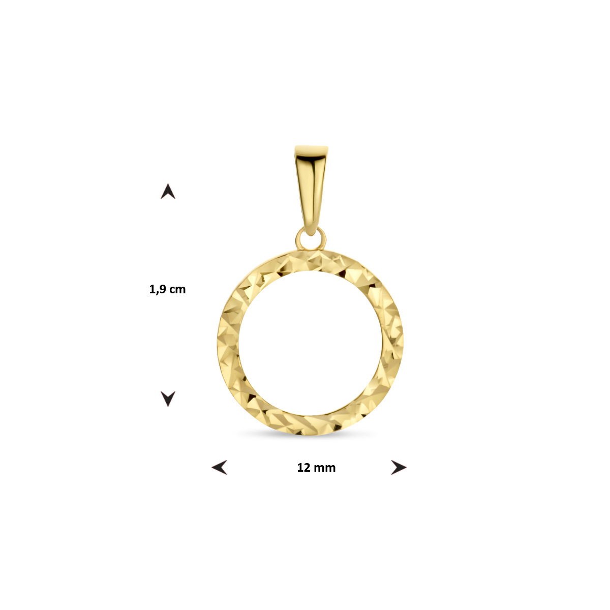 14k Geelgouden ronde hanger met een totale hoogte van 1.9cm.