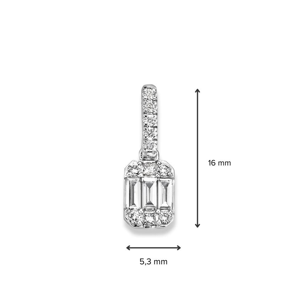Stijlvolle witgouden hanger met baguette en briljant geslepen diamanten.