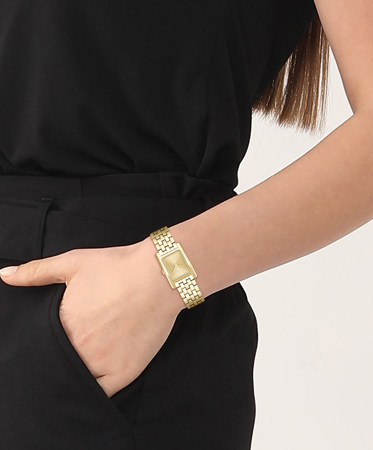 Dit BOSS horloge uit de LUCY serie met artikelnr: HB1502744 heeft een chique look. Zeer geschikt voor de moderne stijlvolle vrouw van nu. Het goudkleurige dameshorloge valt op door zijn stalen rechthoekige horlogekast met een goudkleurige wijzerplaat met minimalistische wijzers. Aan de kast zit een goudkleurige schakelband met kliksluiting. De kast van het horloge heeft een afmeting van 22x24,5mm met mineraalglas en is 3ATM.