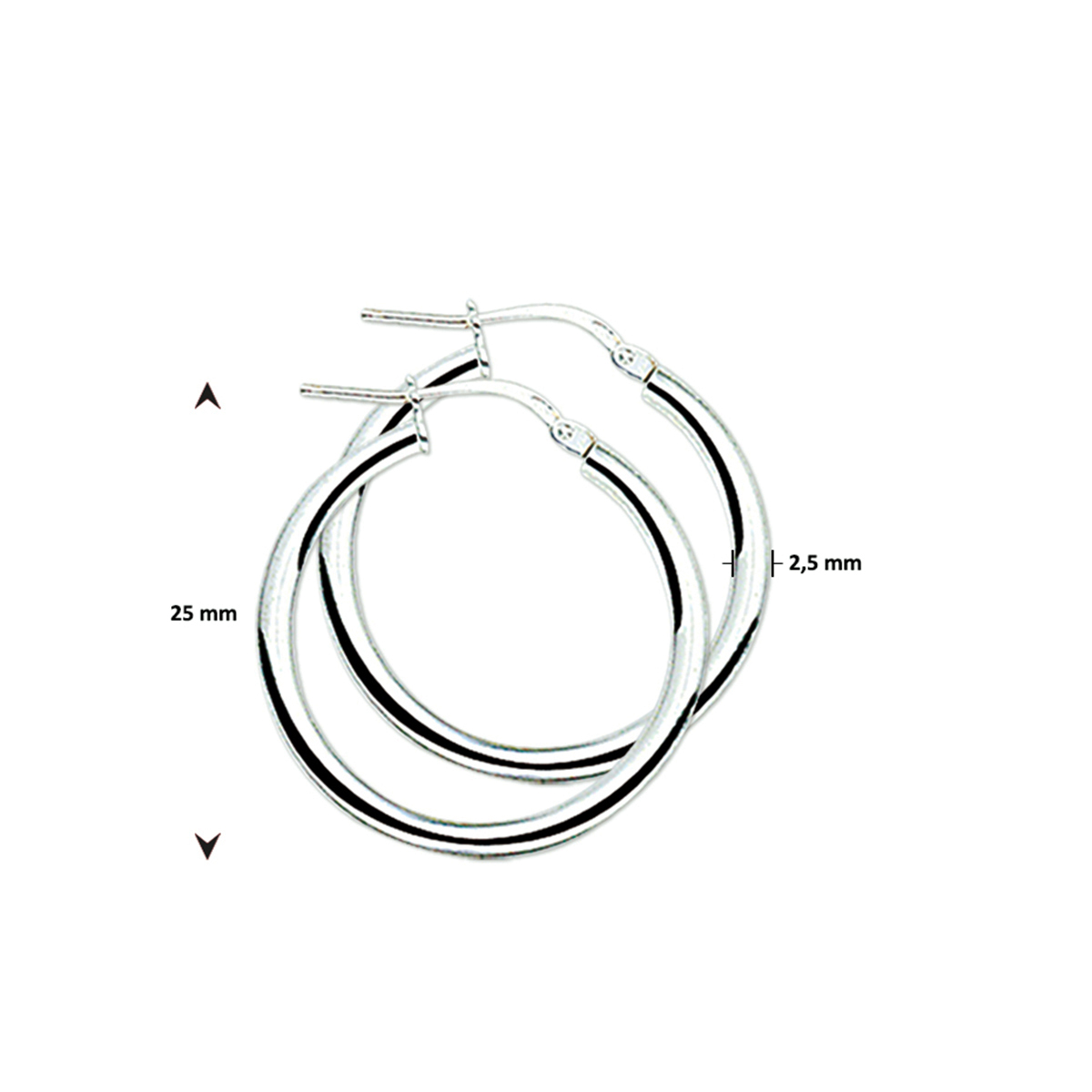 Zilveren creolen met een ronde buis en een hefboom-sluiting.