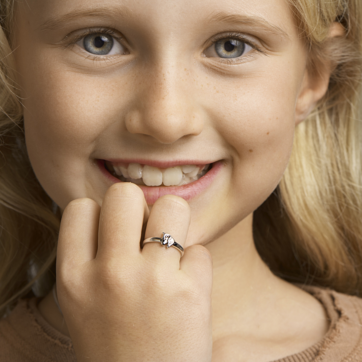 Gerhodineerd 925 zilveren ring uitgevoerd met een paardenhoofd. De ring heeft een breedte van 6mm.