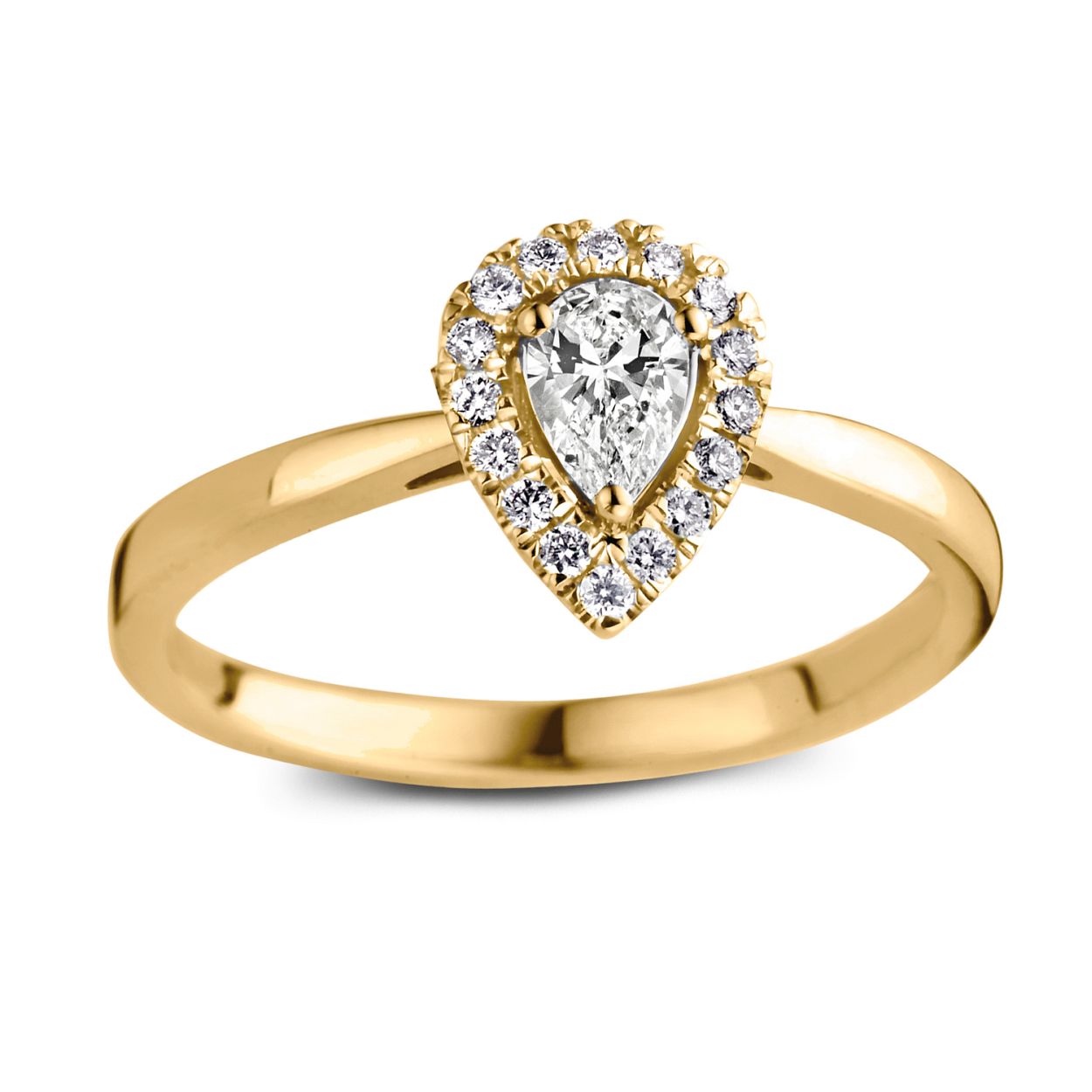 Geelgouden ring 'Elin' met peer middensteen (0,20 crt.) gemaakt van 18 karaat gerecycled goud.