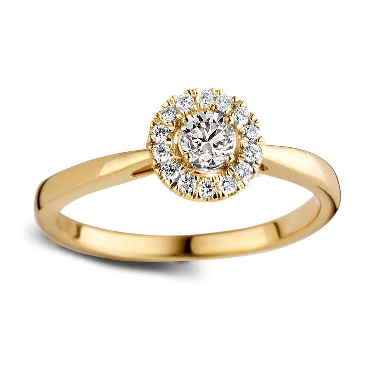 Geelgouden entourage ring 'Emma' met briljant middensteen (0,20 crt.)