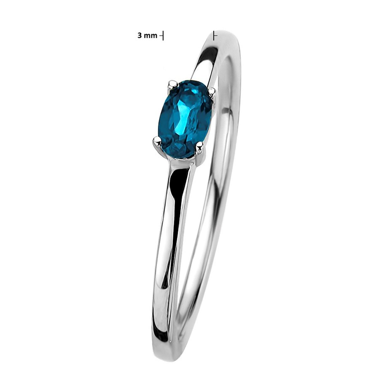 Gerhodineerd 925 zilveren ring uitgevoerd met een schitterende London blue topaas. De ring heeft een breedte van 3mm.