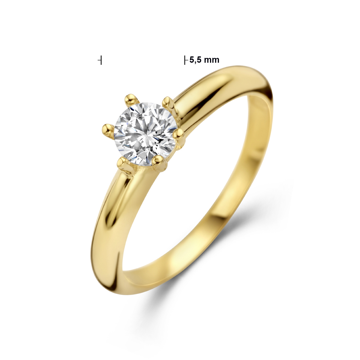 14k Geelgouden ring uitgevoerd met zirkonia. De ring heeft een breedte van 5.5mm.