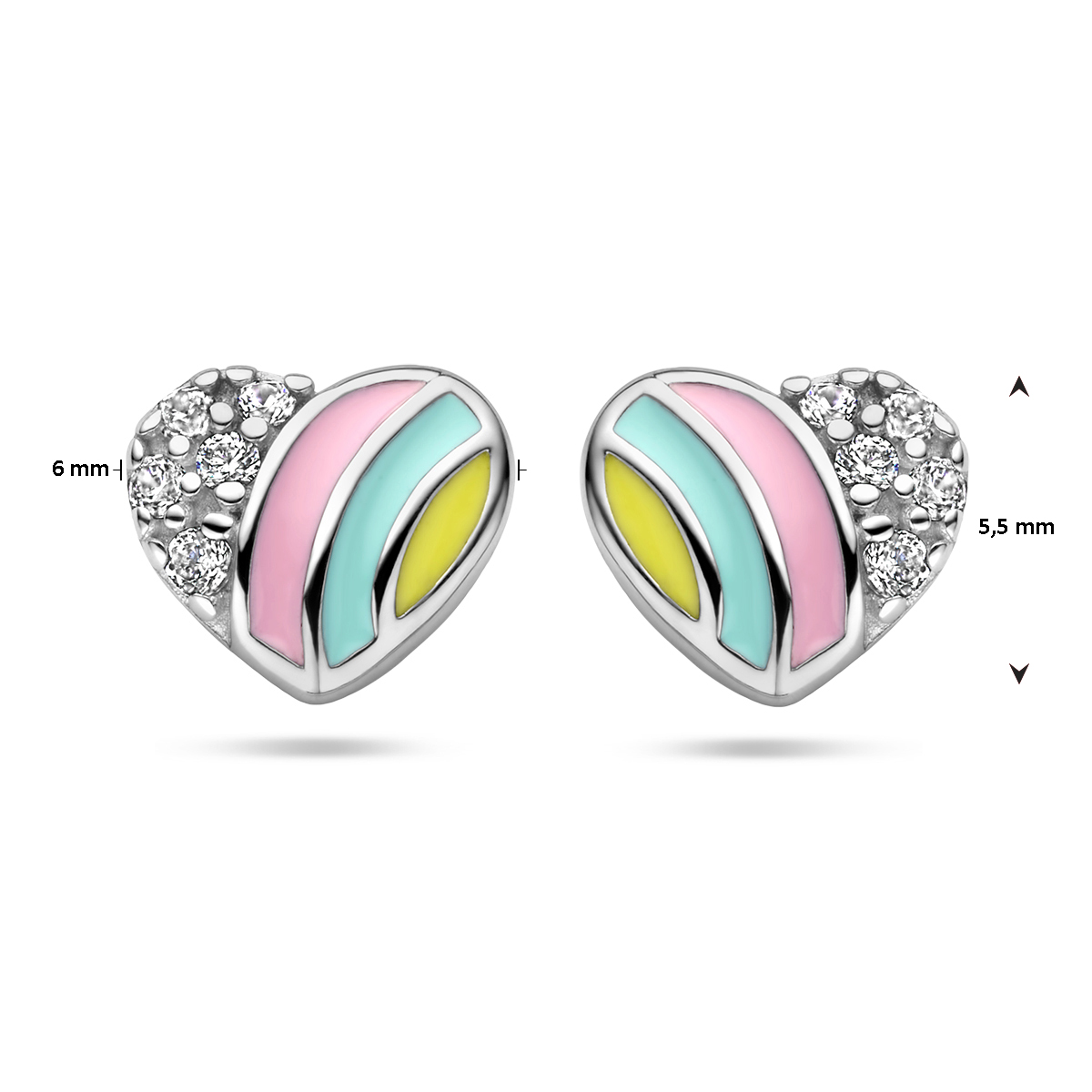 Gerhodineerd 925 zilveren oorknoppen in de vorm van een hart met zirkonia. Het hart heeft een afmeting van 5x6mm.